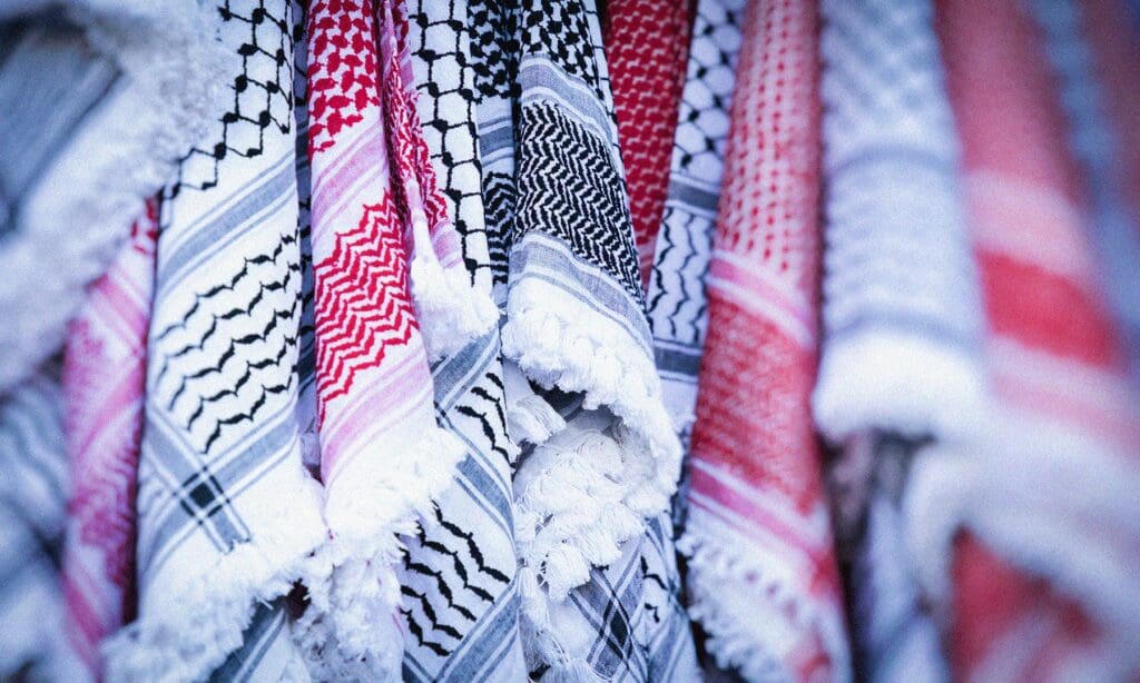 The artist statement reads: The central portrait in my piece is of Gazan journalist Bisan Owda. As a Jew, secular or agnostic as I may…
