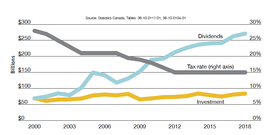Low corporate tax rates contribute to soaring inequality that has also proven to be harmful for economic growth. Moreover, the long-term well-being of Canada is being put at risk, since corporate profits depend on tax-financed public goods such as an educated and healthy workforce and a strong infrastructure. Cutting already low taxes for corporations does not lead them to invest more or contribute their fair share, but it does undermine everyone else.